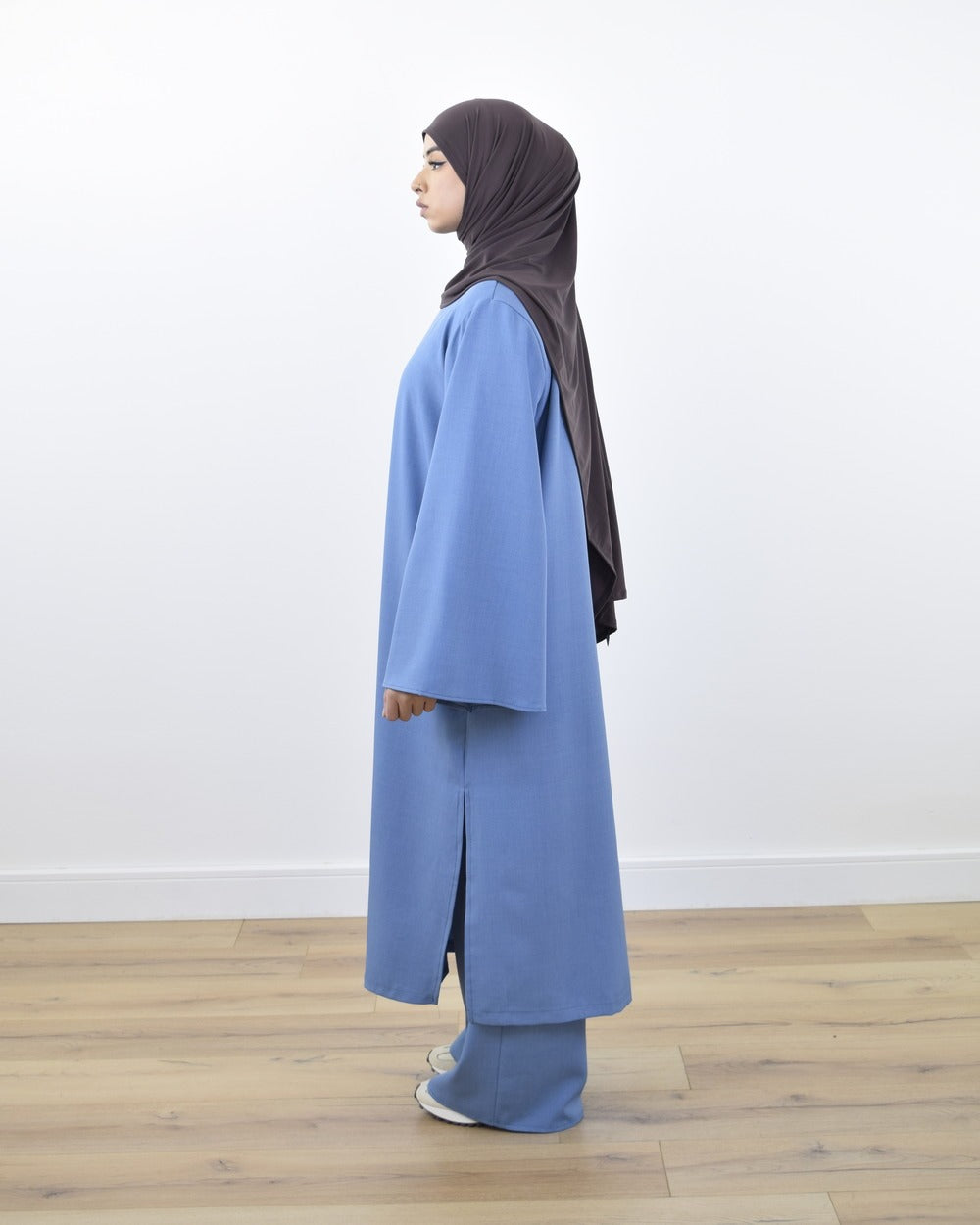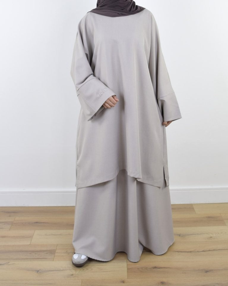 Design élégant : haut ample et long associé à un pantalon fluide pour une élégance sans effort.